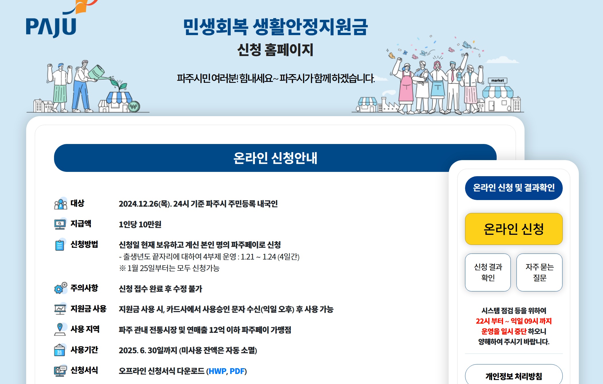 - 지원 금액: 1인당 10만 원 (파주페이 지급)